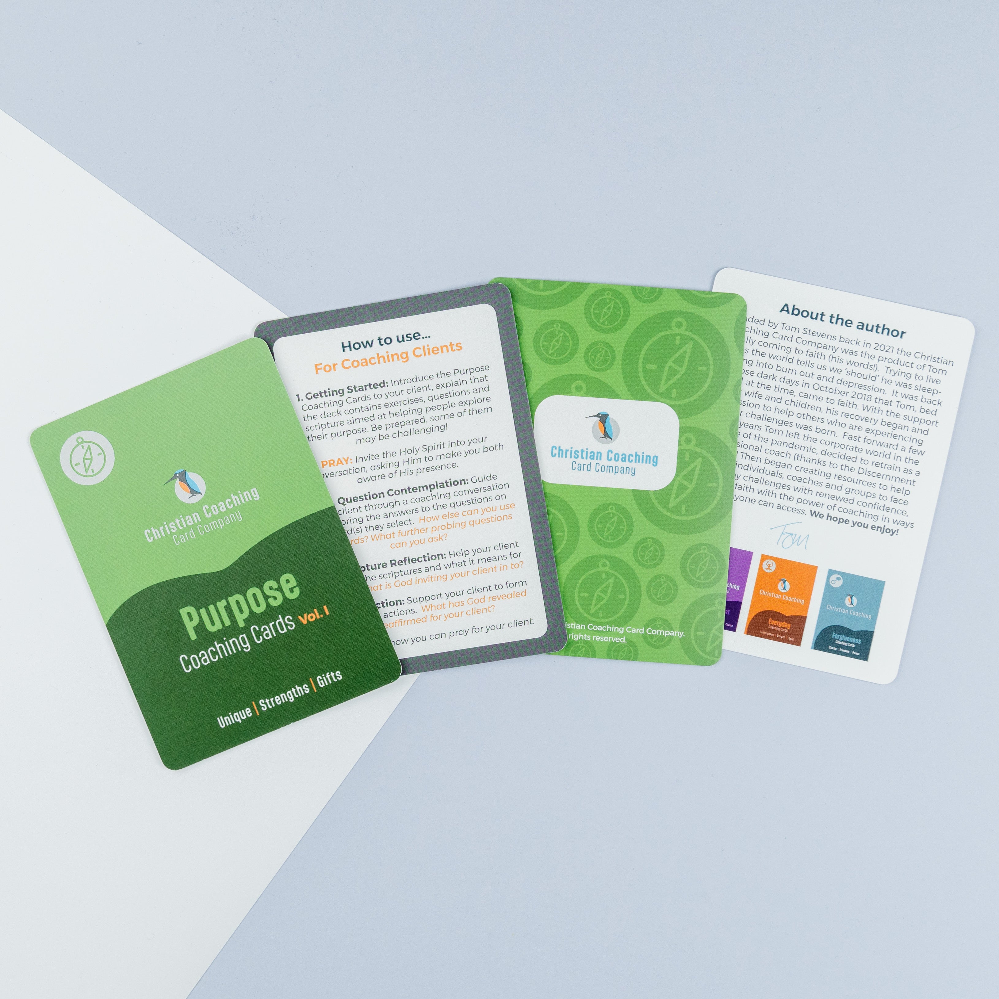 Included in the pack are instructions for how the cards can be used individually, in small groups and for coaching clients. There is also a card which features the story of the Christian Coaching Card Company.